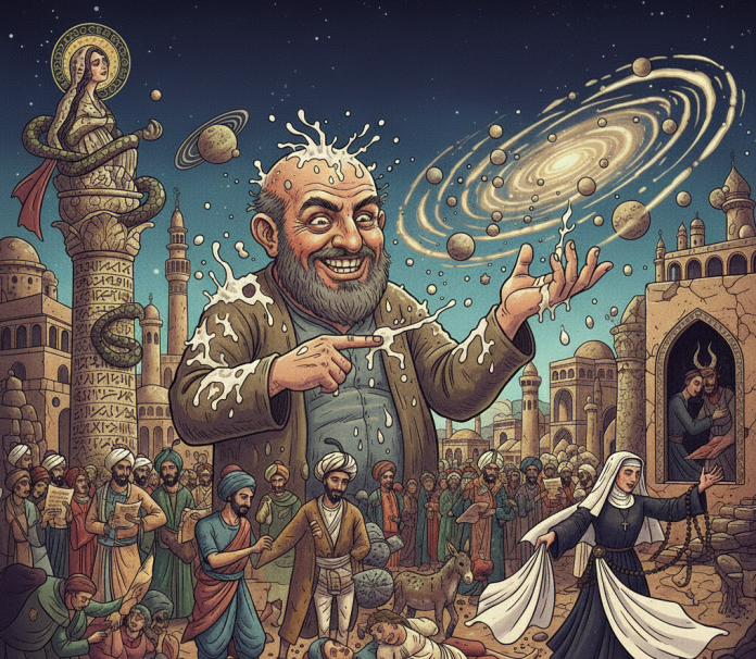 Negli studi seri, quelli con le note a piè di pagina che si moltiplicano come conigli e le citazioni in greco o in avestico per darsi un tono, si dimentica troppo spesso la buffonata dell’esistenza. Eppure il mondo, come affermava un Demiurgo demente spacciatosi per Dio, non fu creato col Logos, ma con una gran pernacchia primordiale.