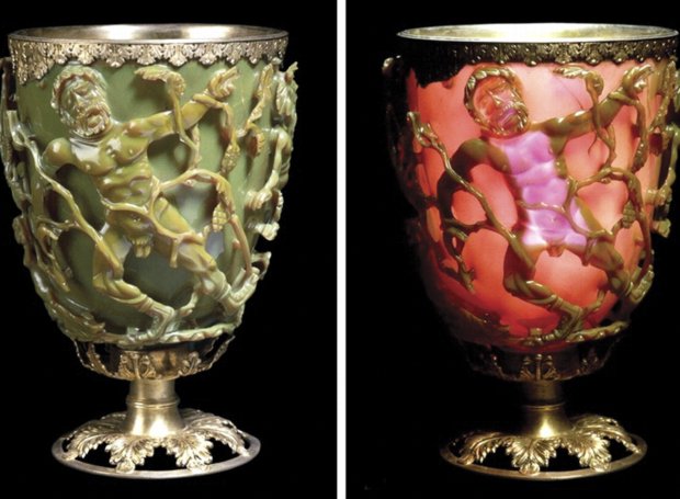 Acquistato nel 1950 dal British Museum, l’enigmatica proprietà del calice ha sconcertato gli scienziati per decenni. Una prima risposta arrivò solo nel 1990, quando un team di ricercatori inglesi, esaminando alcuni frammenti del calice al microscopio, scoprirono che gli artigiani romani furono pionieri nell’utilizzo di nanotecnologie.